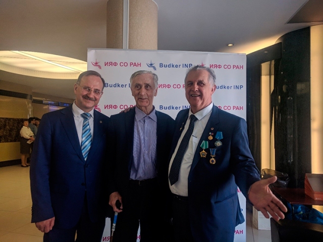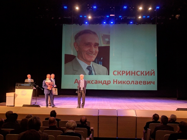 Об истории создания института и его плодотворной деятельности, о неоценимом научном и организаторском вкладе А. М. Будкера, который руководил институтом 18 лет, и его последователя академика А. Н. Скринского, который руководил институтом почти 40 лет, рассказал в своем кратком, но весьма ёмком вступительном слове нынешний директор академик П. В. Логачев. Особо он остановился на грандиозных проектах, которые находятся в разработке в настоящее время.