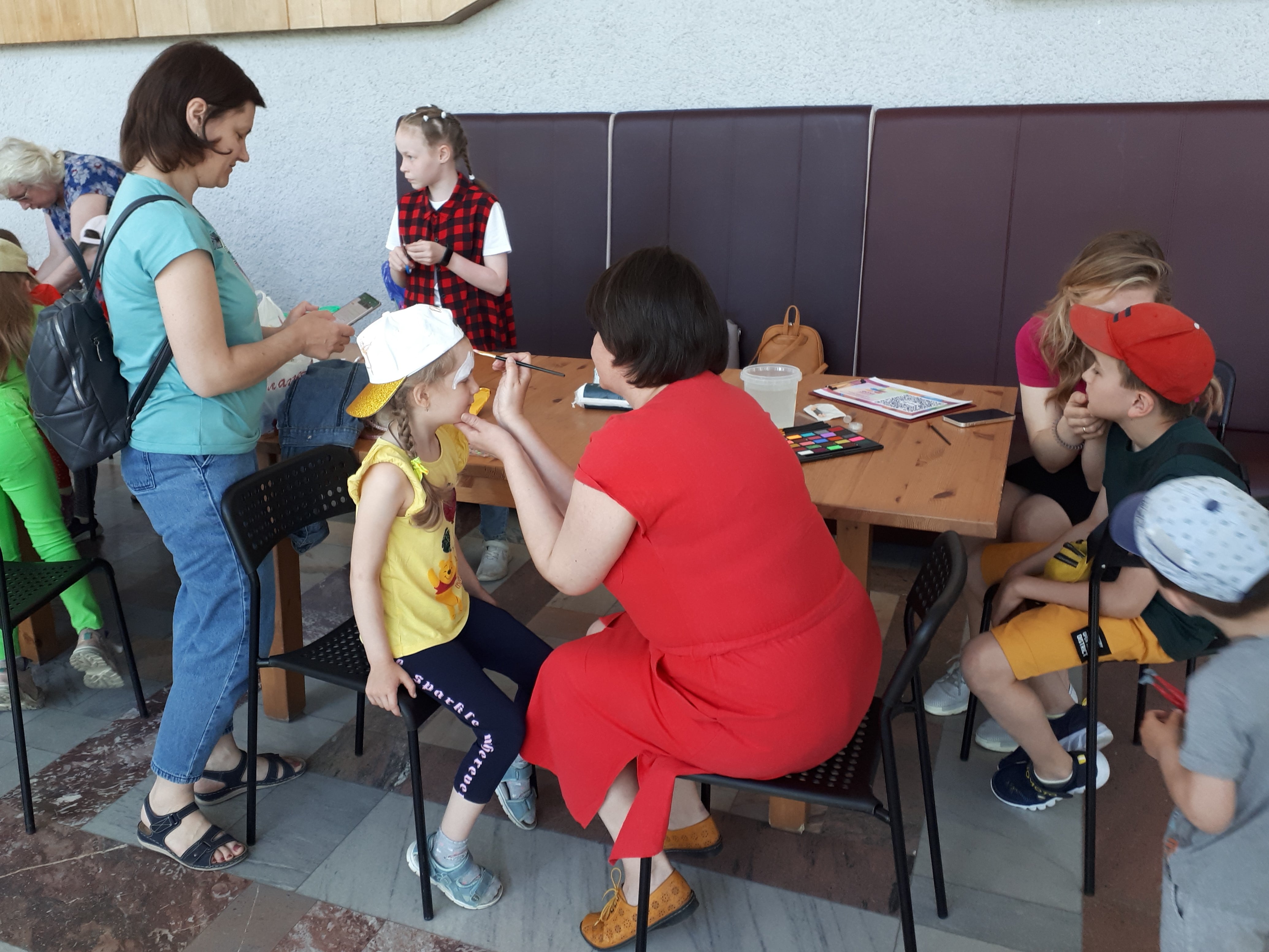На улице мальчишки и девчонки смогли принять участие в игровой программе, организованной центром «Мир молодежи». Мини-городки, «рыбалка» на траве, клоуны на ходулях – развлечения смогли найти и малыши, и ребята постарше. А в фойе Большого зала можно было посетить мастер-классы, сделать яркий аквагрим и посмотреть выставку рисунков и фотографий «Мир глазами детей» участников творческих студий Центра детского творчества Советского района.