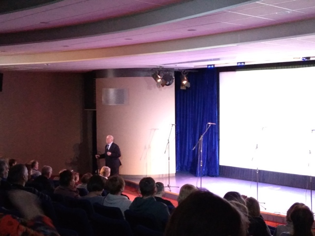 Зрителей приветствует председатель Совета Дома ученых академик Ребров А.К.