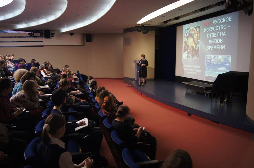 Настоящий подарок всем любителям русского изобразительного искусства сделала сегодня Наталья Юрьевна Бартош -замечательный педагог, знаток истории искусства, канд. филол. наук, зав. кафедрой истории и истории культуры ГИ НГУ. Очень глубоко, образно, даже красиво она раскрыла тему, которой так или иначе коснулись в эти дни все музеи, выставочные площадки, СМИ - тему 1917 года в истории искусства. "1917: русское искусство - ответ на вызов времени" - ракурс исследования был выбран предельно точно: отражение революции в картинах 1917 года и её влияние на судьбы лучших художников времени. Репин, Нестеров, Серебрякова, Лентулов, Малевич, Шагал, Кандинский, Кустодиев и др. Как бы ни старались русские художники не изменять себе, своему искусству, и не замечать катастрофу, почти никто из них не избежал её разрушительного влияния. Встреча, прошедшая 17 ноября в Малом зале ДУ, собрала больше ста зрителей. Было очень много молодых людей - студентов, пришли и художники, коллеги-искусствоведы, гуманитарии. По окончании лекция перешла в беседу, обсуждение, обмен мнениями. От всех зрителей, администрации Дома ученых благодарим Наталью Юрьевну за высокопрофессиональный, неординарный рассказ, интереснейший подбор слайдов, с детализацией, яркими цитатами и неожиданными коннотациями и выводами. Такие события замечательно вдохновляют, одухотворяют и дарят веру в будущее сибирской науки.