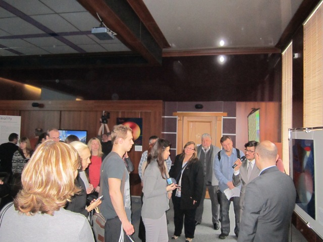 Г-н Ирек Сулейманов провёл краткий экскурс по новым математическим программам, благодаря которым на выставке можно не только познакомиться с причудливыми формами и красками, насладиться произведениями математического искусства, но и создать свои математические картины.
