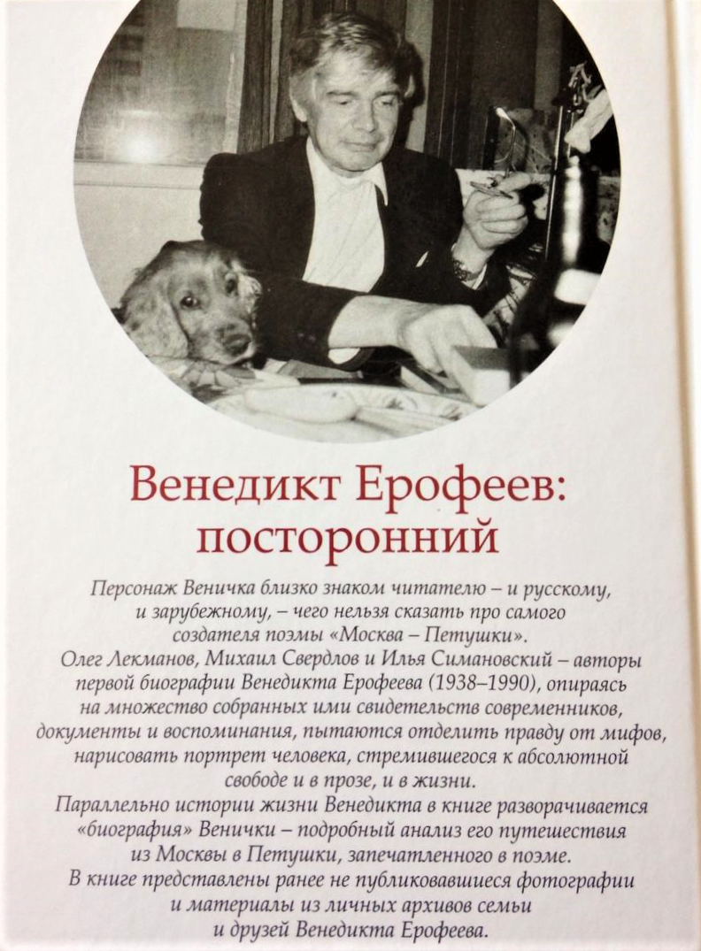 Венедикта Ерофеева нередко отождествляют с его персонажем Веничкой из поэмы «Москва – Петушки», в то время как о самом авторе знают мало – и вот сейчас у нас появилась возможность глубже узнать автора поэмы, известность которой давно перешагнула границы и временные, и языковые. Авторы приводят «множество собранных ими свидетельств современников, документы и воспоминания, пытаются отделить правду от мифов, нарисовать портрет человека, стремившегося к абсолютной свободе и в прозе, и в жизни».
