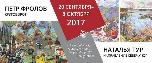 Семья художников Петр Фролов и Наталья Тур представили свои новые работы на выставке в Доме ученых. На открытиивыставки было много зрителей, которые уже стали друзьями художников, поклонниками их таланта и огромного обаяния. Работы Натальи занимают входную часть выставочного зала. Это совсем свежие холсты, написанные в Крыму и на Соловках, поэтому её часть экспозиции иносит название "Направление Север - Юг".