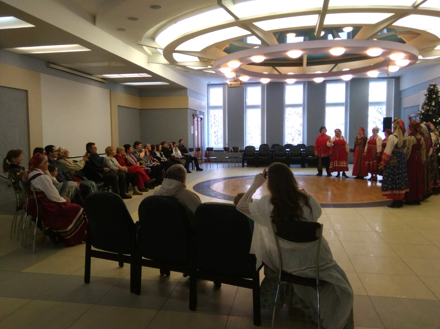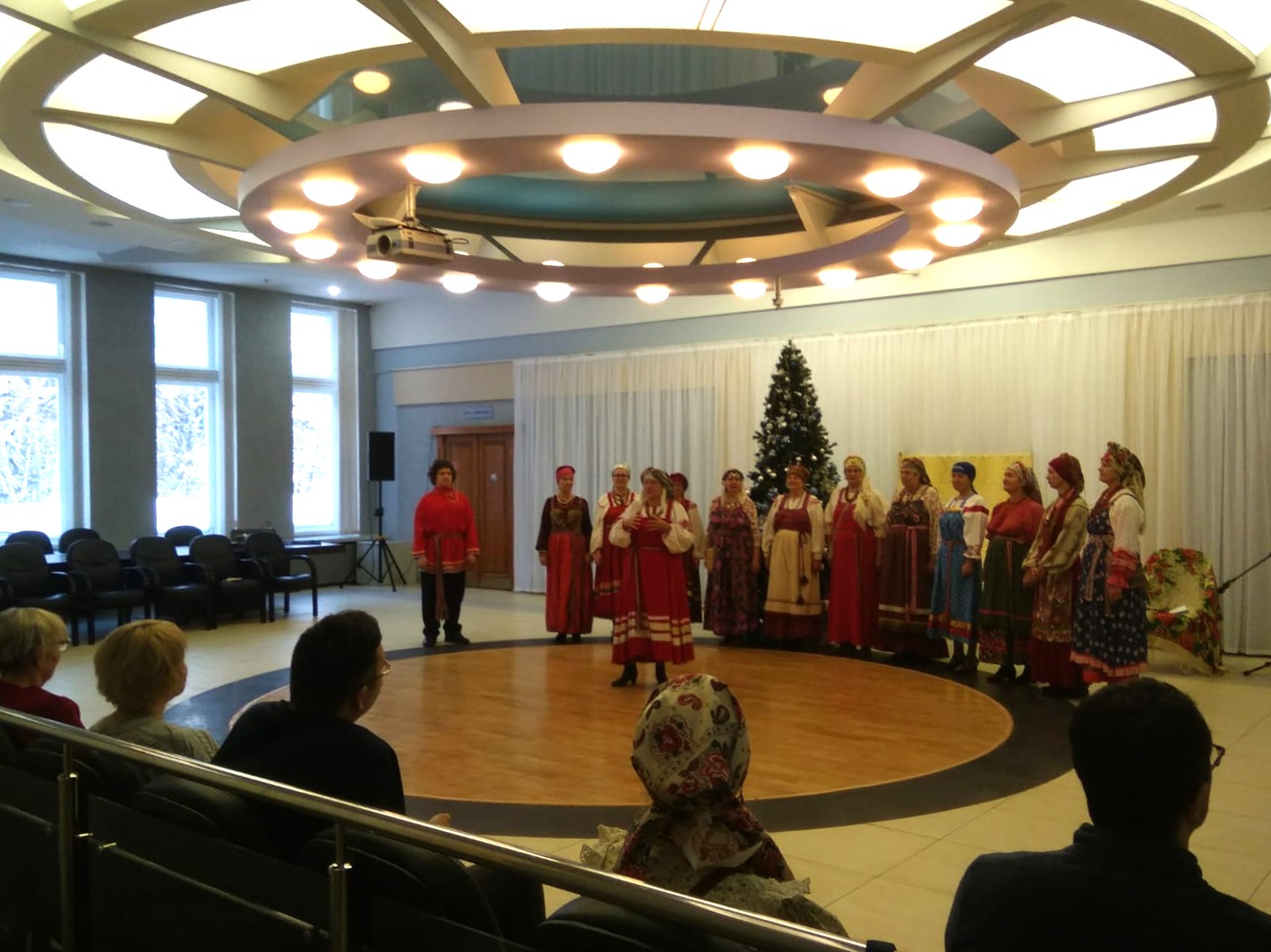 Клуб народной песни Дома ученых отметил свое 38-летие праздничной вечеркой в фойе Малого зала 10 декабря. Зрители смогли послушать веселые и лирические многоголосные песни, поучаствовать в фигурных хороводах и танцах, посмотреть представление традиционного персонажа русского фольклора, задорного Петрушки. Вела вечерку руководитель клуба Наталья Евгеньевна Оболенская.
