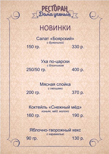 Новинки ресторана