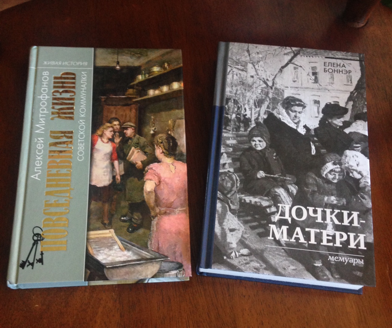 "Дочки-матери"Елены Боннэр и "Повседневная жизнь советской коммуналки" Алексея Митрофанова приоткрывают нам многие факты и детали нашей недавней истории. Елена Георгиевна, супруга академика А.Сахарова, посвятила свои мемуары событиям жизни целой страны и отдельно – своей семье в околовоенный период. В книге представлены уникальные фотографии нескольких поколений семьи Елены Георгиевны. Она писала свою книгу при жизни мужа, они читали вместе страницы рукописи вечерами, и Андрей Дмитриевич с неизменным интересом ждал продолжения и побуждал жену писать дальше. Но смерть Андрея Дмитриевича поставила точку и в книге Елены Георгиевны. Видимо, это был способ общения супругов, каждый из которых прожил сложную и порою трагическую жизнь.