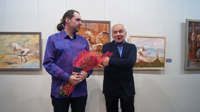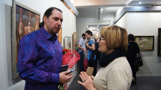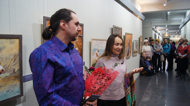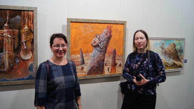 Гости вернисажа с радостью погрузились в этот волшебный мир, окунулись в очень добрую атмосферу картин. Работы Николая и в самом деле соединили в себе многие притягательные качества: живописность, богатство декора, созданного по мотивампетроглифов, сюжетов и элементовскифско-сибирского звериного стиля в украшениях, предметах упряжи, оружия, орнаментах одежды и ковров.
