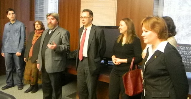 В арт-гостиной Дома учёных собрались друзья художника, коллеги- сотрудники кафедры истории культуры, студенты, руководители НГУ и Гуманитарного факультета,50-летиюкоторого посвящена выставка.