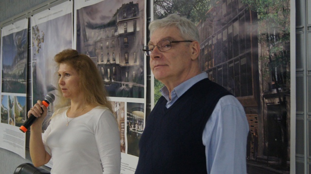 Затем слово передали директору Альянс Франсез в Новосибирске г-ну Оливье Куру, которые очень часто бывает в Доме ученых, проводит тематические встречи и поддерживает Французский клуб. Он поздравил с праздником и открытием интересной выставки, которая на двух языках представляет проектыв области городского планирования и архитектуры. Их авторы показали результаты своих размышлений о городе будущего.