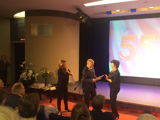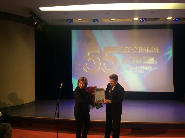 Поздравления от председателя СО РАН академика В. Н. Пармона принимает директор Дома ученых Г. Г. Лозовая