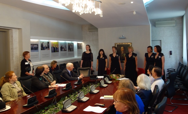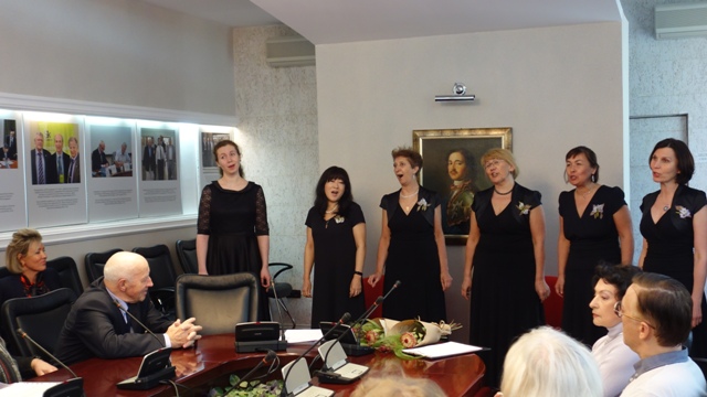 Ансамбль из хорового клуба "АХ АКАДЕМ" исполнил две композиции а капелла, торжественно открыв заседание.