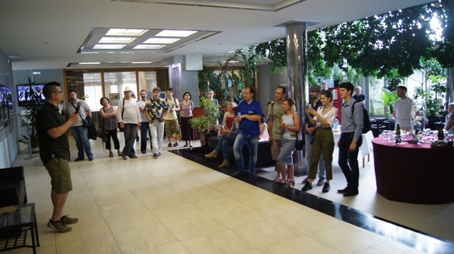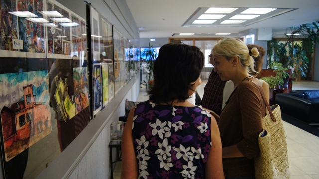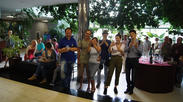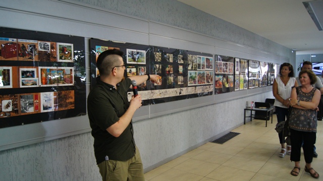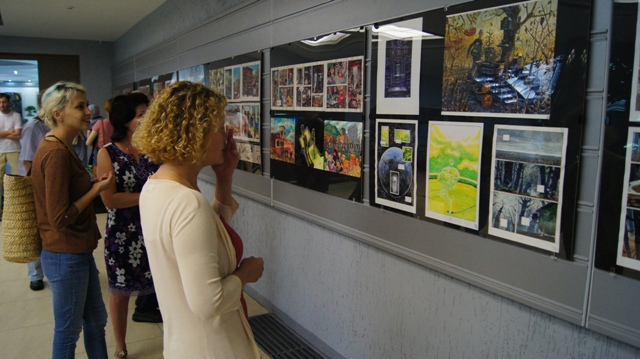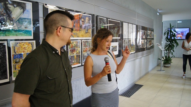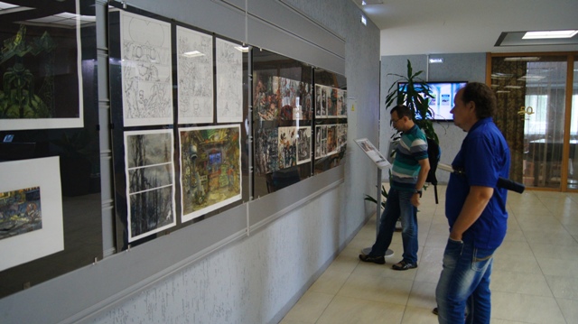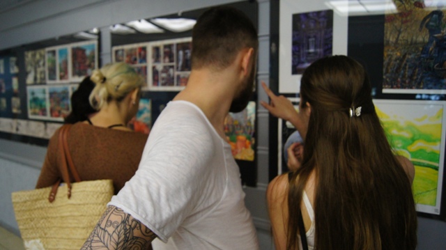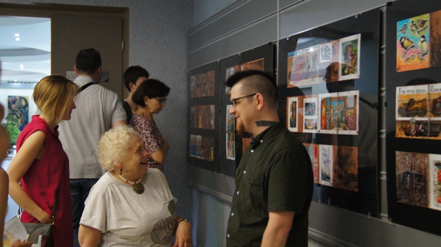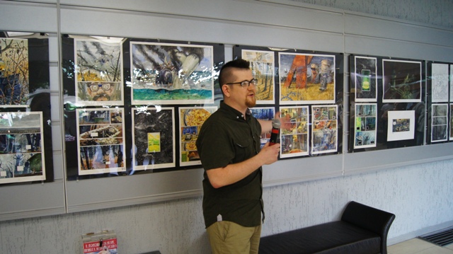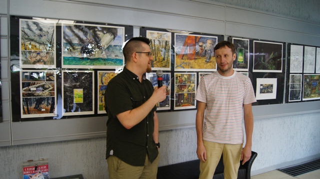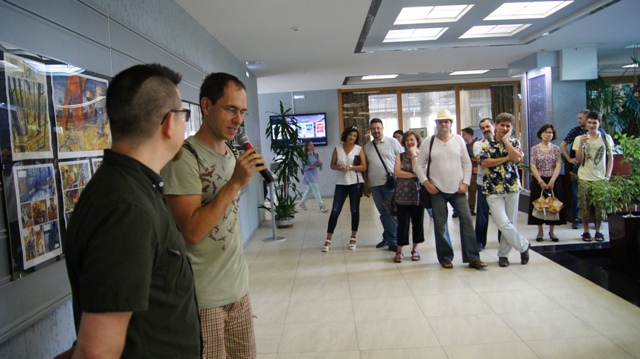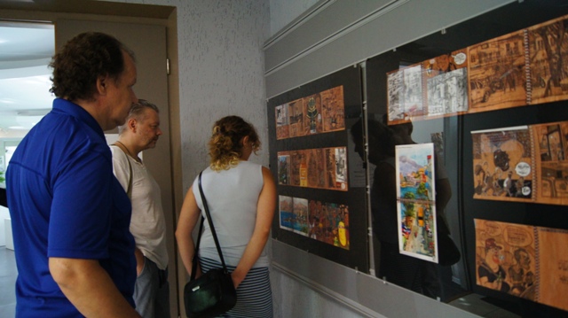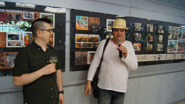 И на вернисаже можно было встретить многочисленных друзей художника, многие из которых послужили натурой для этих рисунков: это молодые ученые, художники, музыканты, завсегдатаи местных пабов, просто прохожие в наших и не только живописных местах. С певым успехом художника поздравили педагоги, обучавшие Андрея на худграфе НГПУ. Им удалось не только обучить его ремеслу, но и сохранить его живую индивидуальность. Кирилл Яковченко, друг и даже соавтор некоторых работ назвал стиль новых работах автора постсоветским кибер-панком, в этом русле идет развитие творчества Андрея Бурилова - загадочное, немного нереальное пространство, акценты на деталях, предметной среде, герой-путешественник во времени и в иные пространства. Всё это очень интересно, захватывает зрителя, выставку хочется смотреть и пересматривать. Зрители на вернисаже этим и занимались, плавно перемещаясь от начала к концу и обратно, перечитывая и обсуждая в автором его выразительные скетчи, сочные акварели, артистичные коллажи и страницы будущего графического романа.