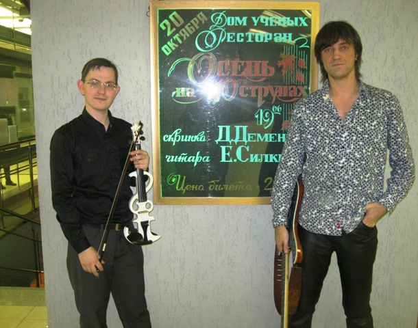 20 октябрядуэт скрипача Д. Деменко и гитариста-виртуоза Е. Силкина подарил посетителям ресторана Дома ученых незабываемый вечер.В основе успеха - репертуар музыкантов и прекрасный контакт спубликой......ююю,, аплодировавшей буквально после каждого музыкального произведения. Ведь артистыпредставили букет замечательных музыкальных шедевров, и по просьбе гостей ресторана обещали вскоре повторить вечер! Следите за рекламой!