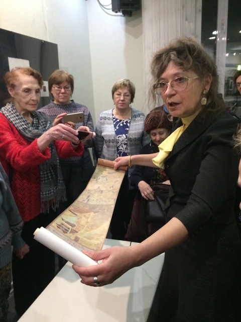 На открытии выставки собрались настоящие ценители японского искусства, мастера аранжировки в японском стиле, любители изобразительного искусства. К всеобщему огромному удовольствию перед собравшимися выступила Елизавета Евгеньевна Малинина, кандидат филологических наук, доцент кафедры востоковедения ГИ НГУ. Она устроила настоящий экскурс в глубину веков, обратила внимание публики на особенности эпохи создания романа "Гэндзи-моногатари", это эпоха Хэйан, эпоха предельной эстетизации всех искусств и особых взаимоотношений в среде аристократии. Елизавета Евгеньевна продемонстрировала факсимильную копию свитка рукописи романа Мурасаки. Её эмоциональный рассказ придал особый настрой нашему событию.