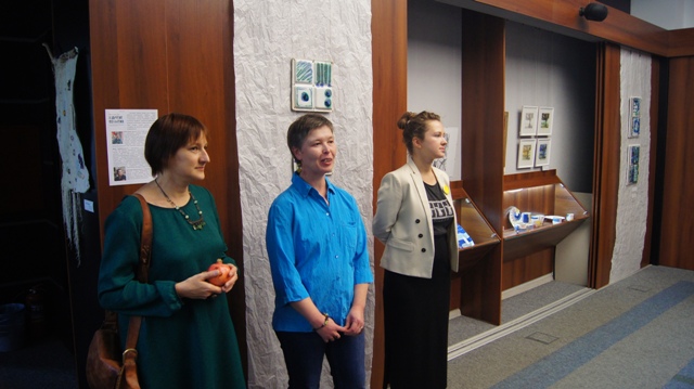 Теплым сентябрьским вечером в Арт-гостиной Дома ученых прошел вернисаж выставки работ художников Марии Гнучевской, Алёны Синюты и Александры Гришпун. Художники впервые собрались вместе в формате выставки, хотя довольно давно дружно работают в творческом пространстве Арт-цоколь и хорошо знакомы с творчеством друг друга, поэтому первая выставка в Доме ученых получилась удивительно гармоничной, разноплановой и содержательной. Здесь соседствуют стекло и шерстяной гобелен, глазурованная керамика и акварель, монохромные графические листы и посуда экзотических расцветок. В основу выставки была положена идея представления не конкретных образов, а ощущений, воспоминаний, с ними связанных, которые способны вызвать у зрителя живые ассоциации, эмоции и теплые человеческие чувства. Море, лето, бабушкин дом, детство - об этом вам расскажут ключи от забытых дверей, игра в снежки, синие и охристые краски керамических панно, грачи на деревьях или просто узоры пятен туши на бумаге - у каждого свой путь к себе, а тем более, у художников, надолго сохраняющих и умеющих перерабатывать самые разные впечатления в свои творения.