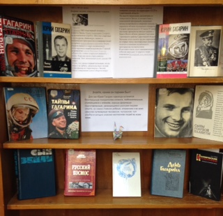 Выставка литературы о Юрии Гагарине в библиотеке ДУ