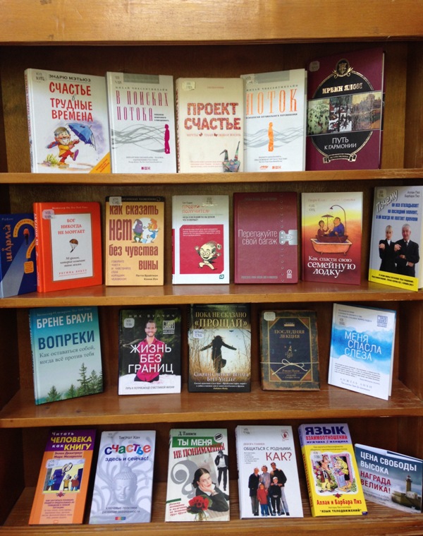 На выставке представлены работы как известных авторитетов в области психологии общения, так и людей, которые попав в трудные, порою неразрешимые ситуации, смогли найти в себе силы, чтобы поделиться с нами тем, что помогло и помогает преодолевать и недуг, и жизненные обстоятельства. Книги эти не о том, как разбогатеть за три дня (хотя, если внимательно читать…), а о том, что не надо ждать, пока нам дадут карту с проложенным новым путем, это мы сами должны понять, куда и как двигаться, искать и находить то, что поможет и поддержит.