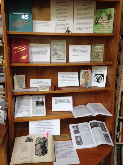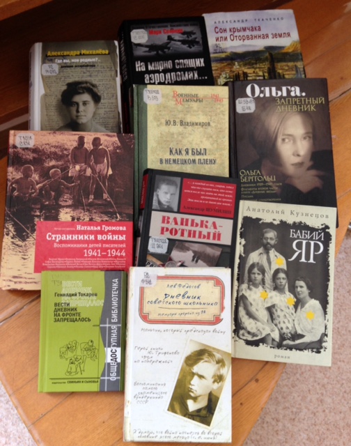 На отдельном стенде книги-воспоминания и участников военных действий, и записки их близких, поскольку не все, прошедшие войну могли или хотели говорить о тех страшных днях и годах. Для нас это особенно близко, поскольку это наши соседи, земляки, читатели нашей библиотеки, члены нашего Дома Ученых. Поэты, ушедшие на войну, вернувшиеся живыми, или оставшиеся названиями наших улиц … Мы помним и хотим помнить всех, кто по обе стороны фронта приближал долгожданную Победу.